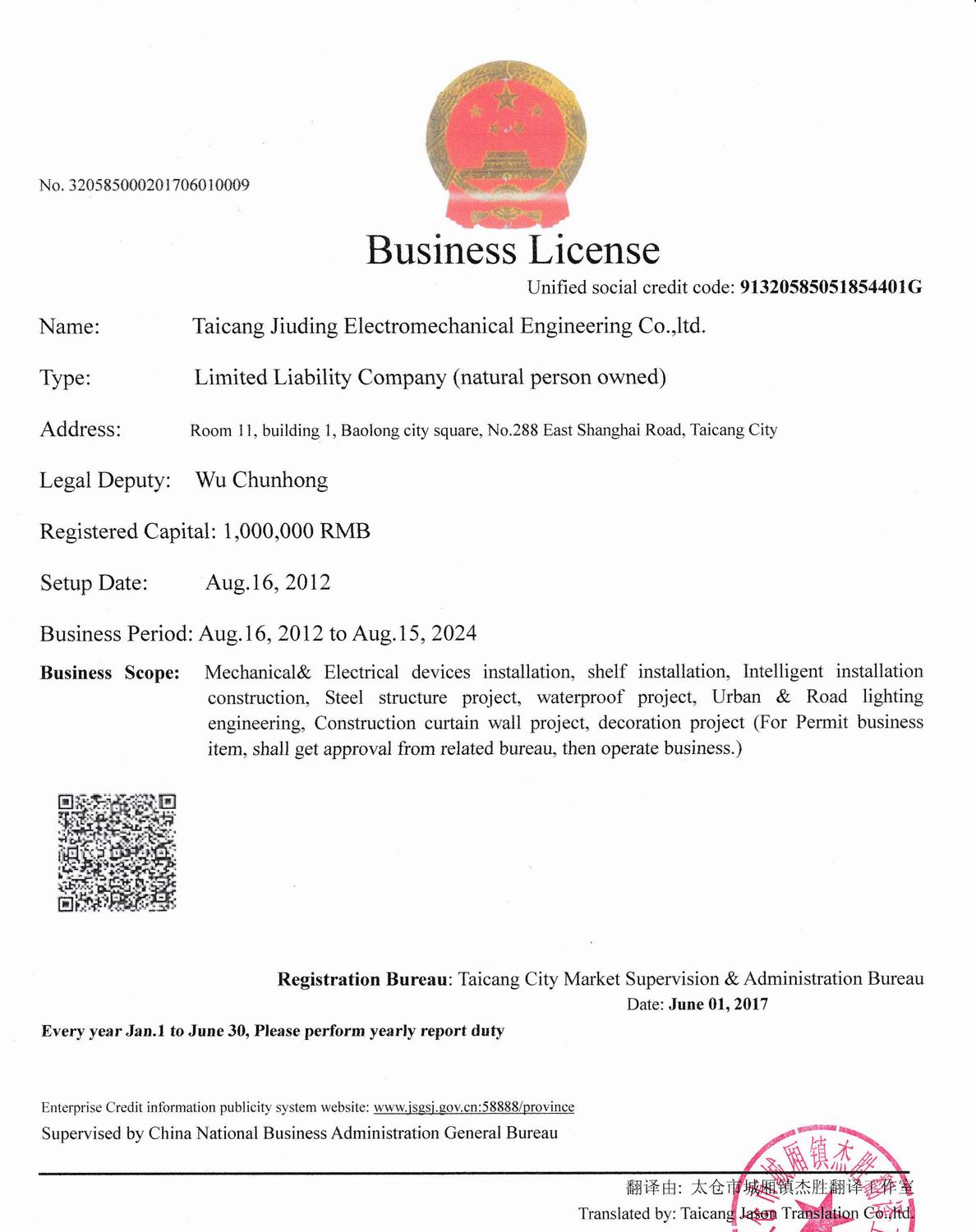 • 營業執照翻譯